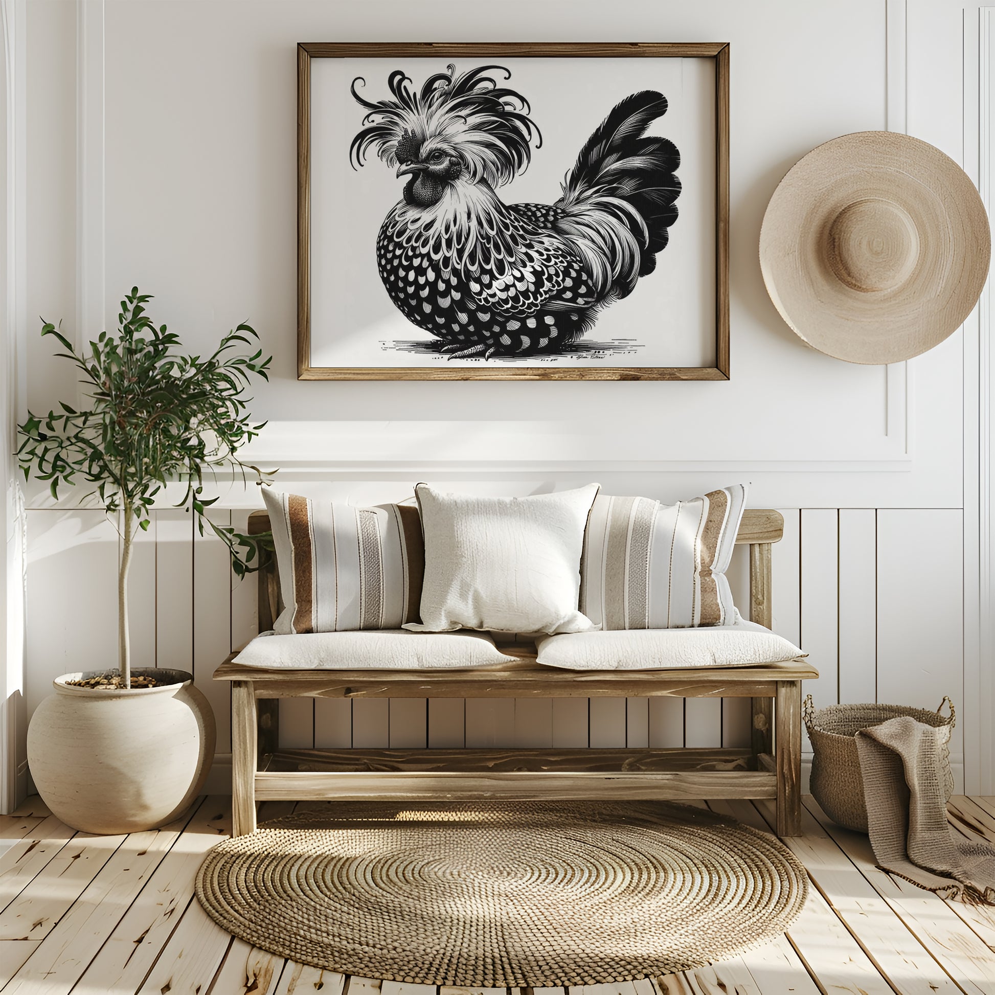 This charming hand-drawn digital illustration captures a spirited Polish rooster in pen and ink, bursting with personality and folk-art flair. Perfect for adding a touch of whimsy to your space, this playful design celebrates rustic charm and traditional craftsmanship. Available across a variety of items, you can bring this delightful rooster to your home in multiple ways. Whether you're drawn to vintage aesthetics or simply love quirky farmyard characters, this one's sure to strut its stuff in your collection!